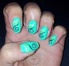 I was afraid a topcoat might ruin it, so I used KOH DRY DROPS! instead. One drop and your nail polish is dry within the minute. It also contains Aloë Vera and Vitamin E for the cuticles. My hands were really dry and they LOVE the Koh drops. I did put another drop on the hands as well, that's why my hand is oily.